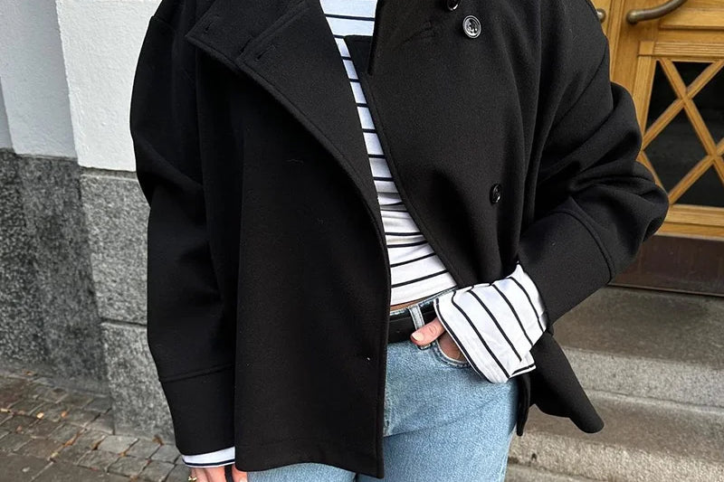 De combinatie van bontkraag en wollen stof ziet er zo high-end uit! Warm zonder dat het omvangrijk oogt.