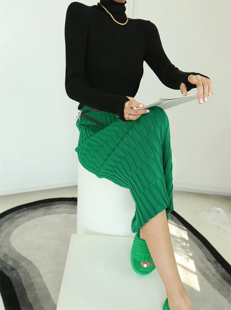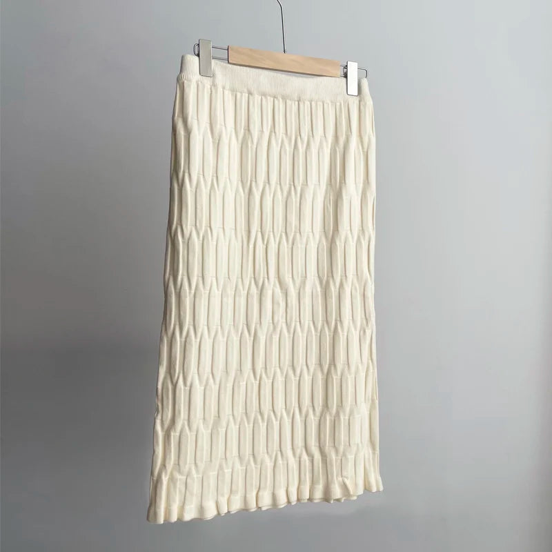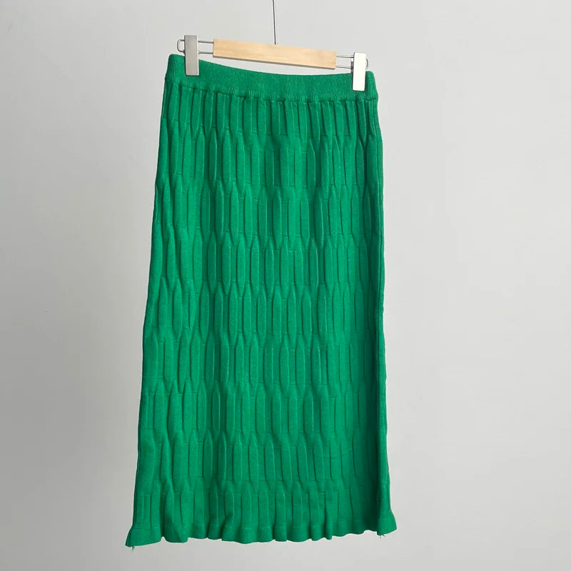 Warme, elastische rok met een flatterende rechte pasvorm. Comfortabel en stijlvol, ideaal voor vintage of casual winterlooks.